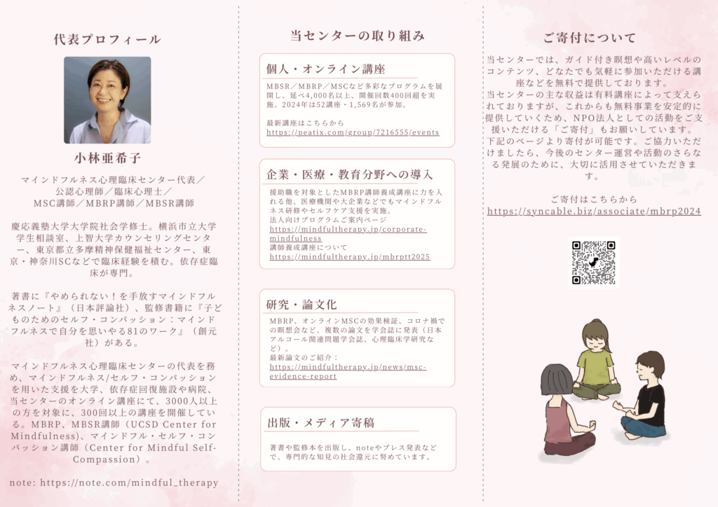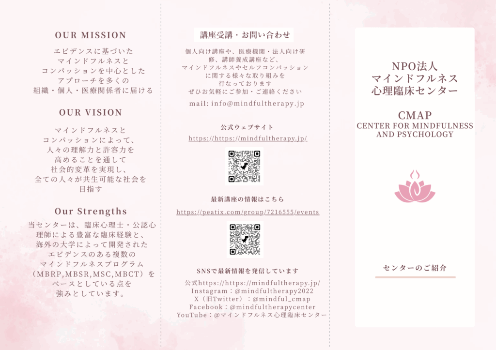 NPO法人マインドフルネス心理臨床センター パンフレットのご紹介