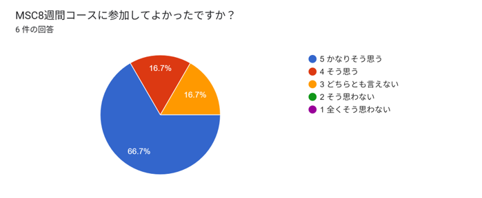 ・MSC8週間に参加してよかったと83%の方が回答(有効回答6名)