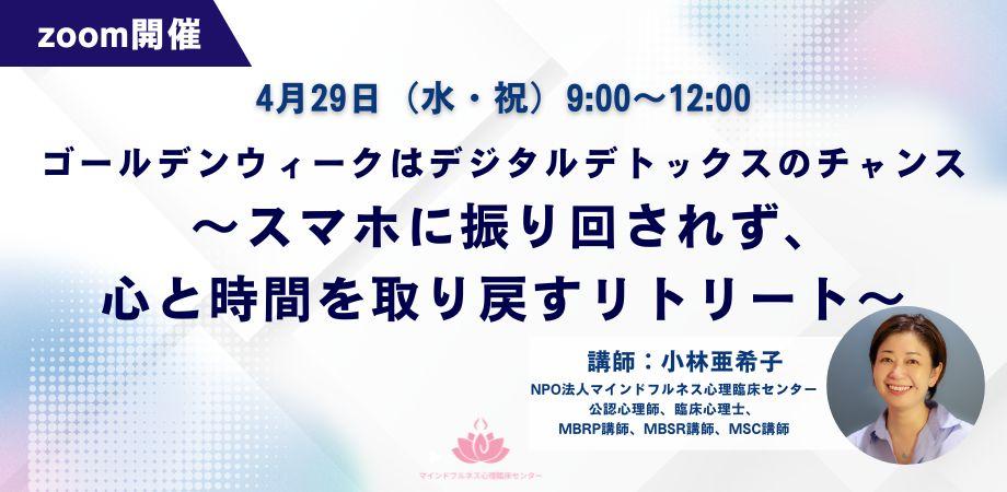 - WS・研修2026年04月15日2026年4月29日(水・祝)開催 ゴールデンウィークはデジタルデトックスのチャンス 〜スマホに振り回されず、心と時間を取り戻すリトリート〜